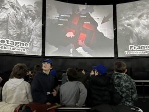Après cette visite passionnante, nous avons marché jusqu’au cinéma 360 où nous avons vu un film récapitulant les 100 jours de la libération de la Normandie !